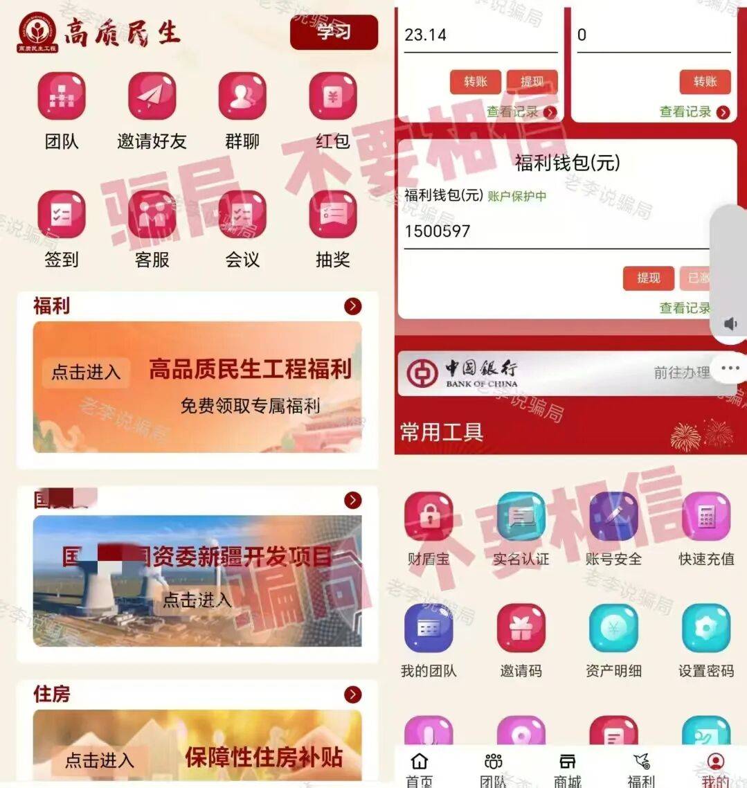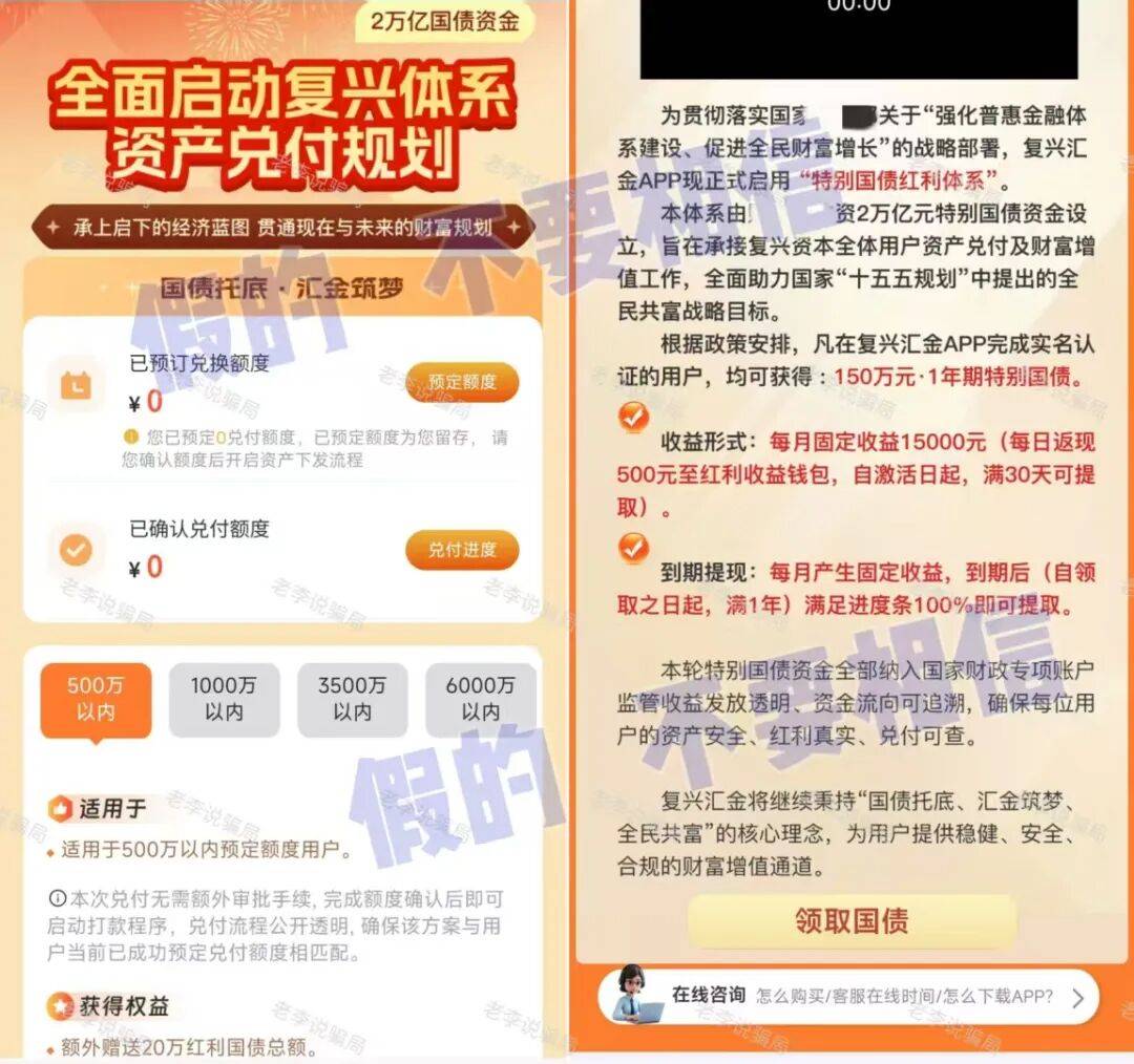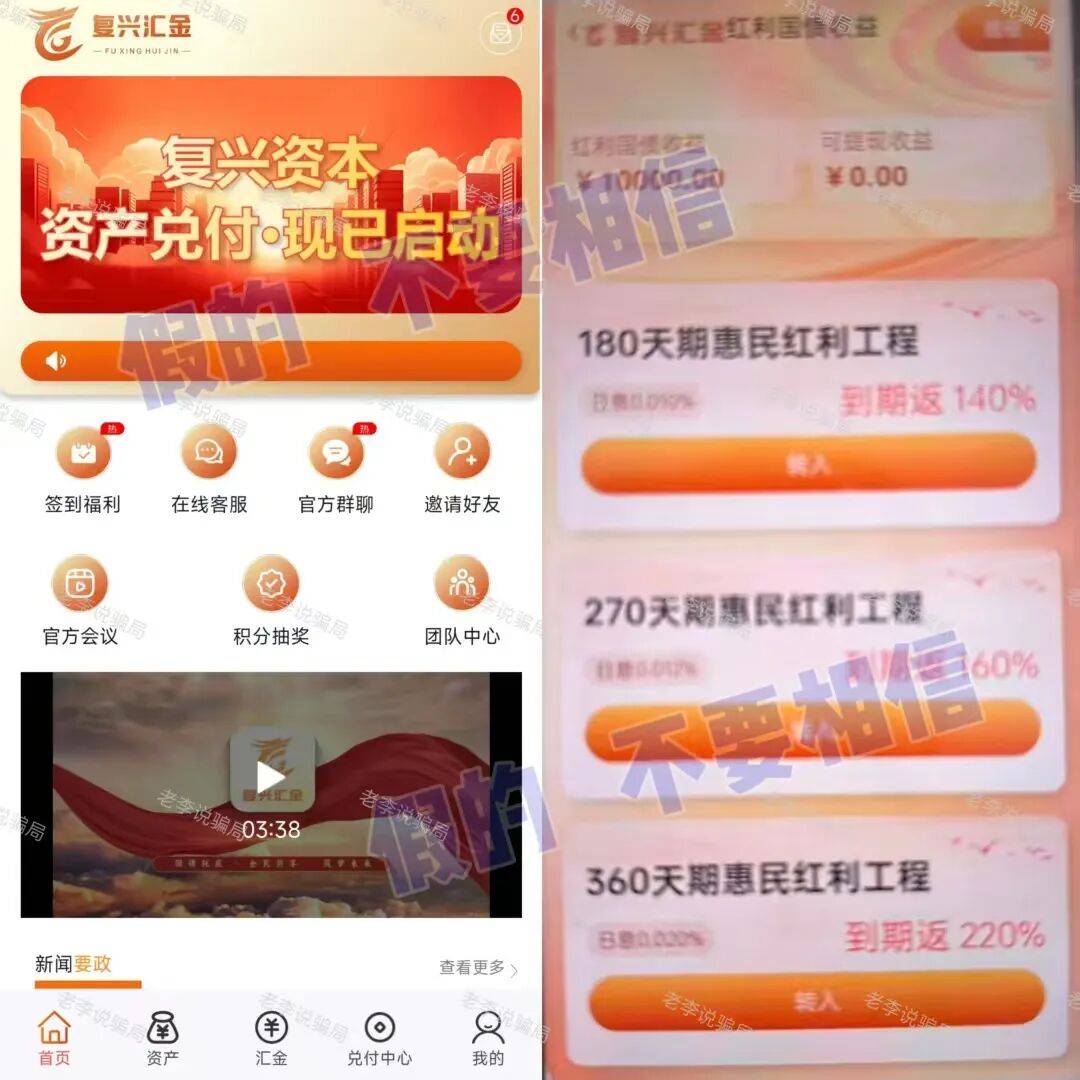 打着“资产兑付”的旗号,谎称与“国债资金系统对接”,以“150万特别国债红利额度”吸引参与者加入。向用户售卖不同周期的“惠民红利工程”理财产品。